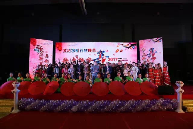 的关怀和支持,回顾了2016年学院在人才培养、教学科研、学科建设、人才引进、队伍建设等方面所取得的成绩,表达了对新一年的期许,并对全体师生致以新年的祝福。张雷书记为大家带来了诚挚的新年祝福,并倾情演唱了一首《跟往事干杯》,杨建春书记携着他在超级演说家中的学员身穿长袍带来一段精彩的相声表演,博得全场热烈掌声。