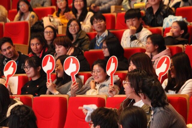 第一季冠军李佳年同学也以自己在萃升演说家活动的亲身经历为契以“战胜你的内心”为题做精彩演讲。伴随着学生的激情舞蹈,第二轮比赛拉开了帷幕,本轮比赛的题目由选手们在第一轮演讲结束后现场抽取,面对刚拿到手的陌生题目,他们不慌不躁、层层深入,在台上充分展现出自己的演说风格。每名同学结束后,评委老师专业诙谐的点评更为现场增添了无限激情,将气氛推至了当晚的最高潮。
