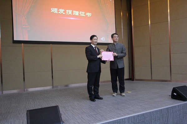 张雷书记给辽宁省莆田商会颁发捐赠荣誉证书