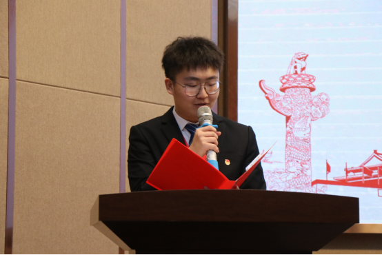 学员代表贾森发言,他表示,将借青马工程这个广阔的平台不断锤炼意志,砥砺奋进,在勤勉学习中提升自我,在踏实拼搏中继往开来,不忘初心使命,不负学院栽培。
