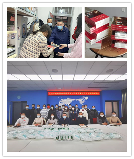 根据疫情防控的需要先后向学生及各集体发放了口罩、消毒液、书籍、牛奶等防疫和学习生活用品,并积极开展心理咨询等活动,密切关注学生的身心健康状况。