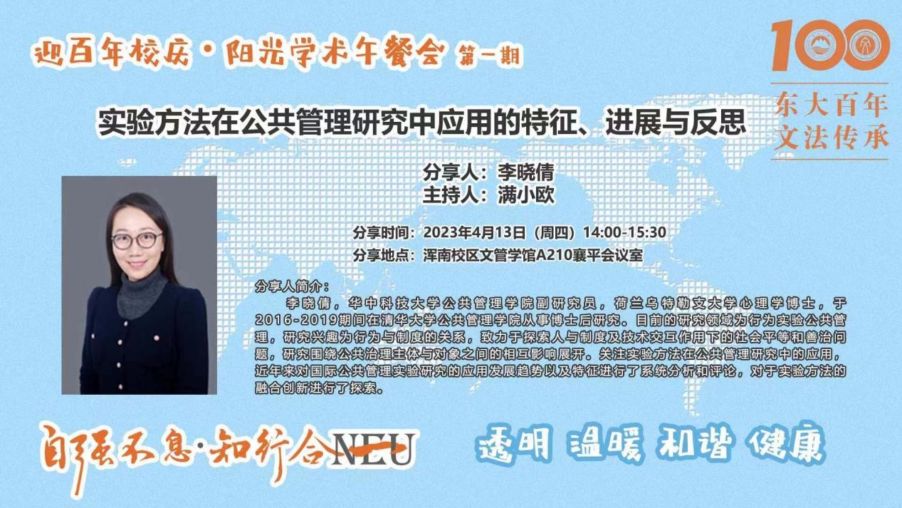 第一期“迎百年校庆·阳光学术午餐会”于文管学馆A210成功举办,华中科技大学公共管理学院副研究员李晓倩应邀作《实验方法在公共管理研究中应用的特征、进展与反思》线上主题分享。日本三级