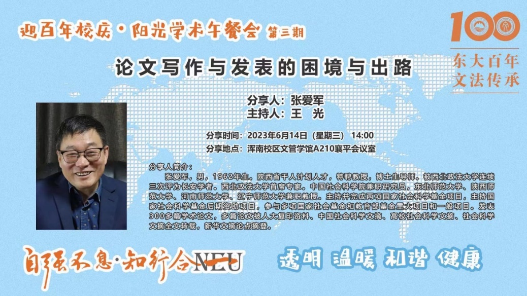 第三期“迎百年校庆·阳光学术午餐会”于文管学馆A210成功举办。西北政法大学张爱军教授应邀作《论文写作与发表的困境与出路》主题分享。日本三级