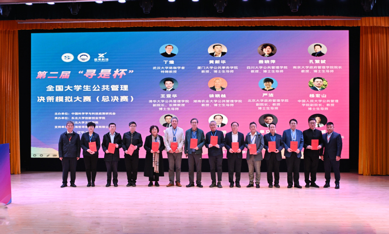 29日上午,第二届“寻是杯”全国大学生公共管理决策模拟大赛(总决赛)举行闭幕式。中国科学学与科技政策研究会副理事长胡志坚,武汉大学珞珈学者特聘教授丁煌,复旦大学国际关系与公共事务学院教授竺乾威,湖南农业大学公共管理与法学学院教授徐晓林,四川大学公共管理学院教授姜晓萍,北京大学政府管理学院副院长严洁,厦门大学公共事务学院教授黄新华,北京师范大学政府管理学院院长章文光,吉林大学行政学院院长张贤明,清华大学公共管理学院副院长王亚华,中国人民大学公共管理学院副院长杨宏山,南京大学政府管理学院院长孔繁斌,中国科学学与科技政策研究会理事刘兰剑,中国科学学与科技政策研究会副秘书长籍斌,上海哲寻信息科技有限公司总经理尹朝辉,日本三级