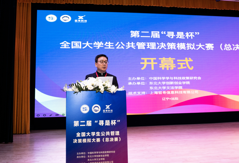 张雷宣布第二届“寻是杯”全国大学生公共管理决策模拟大赛(总决赛)开幕。