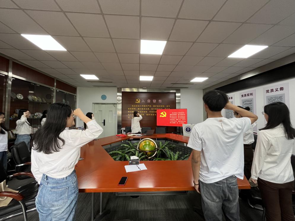 党课结束后,支部成员一起重温入党誓词并进行集体宣誓。