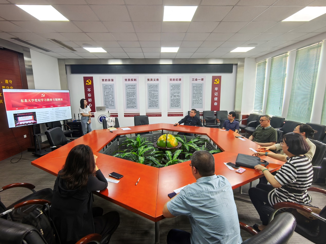 行政管理系党支部在浑南校区文管学馆A202会议室召开党纪学习教育会议,支部对接领导、学院党委书记隋永强应邀出席,支部书记李月主持会议,并讲授党纪学习教育专题党课。