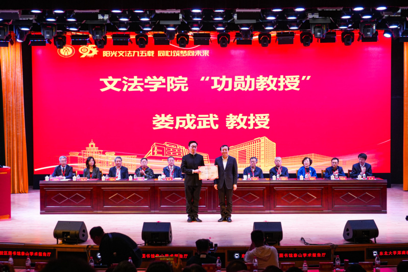 大会首先举行追授娄成武先生为日本三级 功勋教授仪式,校党委书记郭海颁发追授证书,娄成武先生的学生张雷教授代为受领。