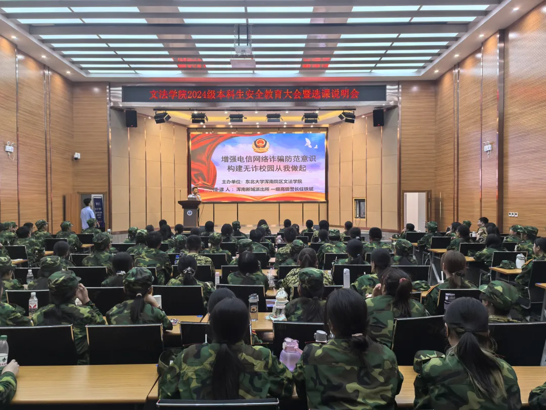 此外,学院召开2024级本科生安全教育大会,邀请浑南新城派出所的警长就相关安全问题为同学们进行普法教育,提高了同学们的守法意识以及安全意识。