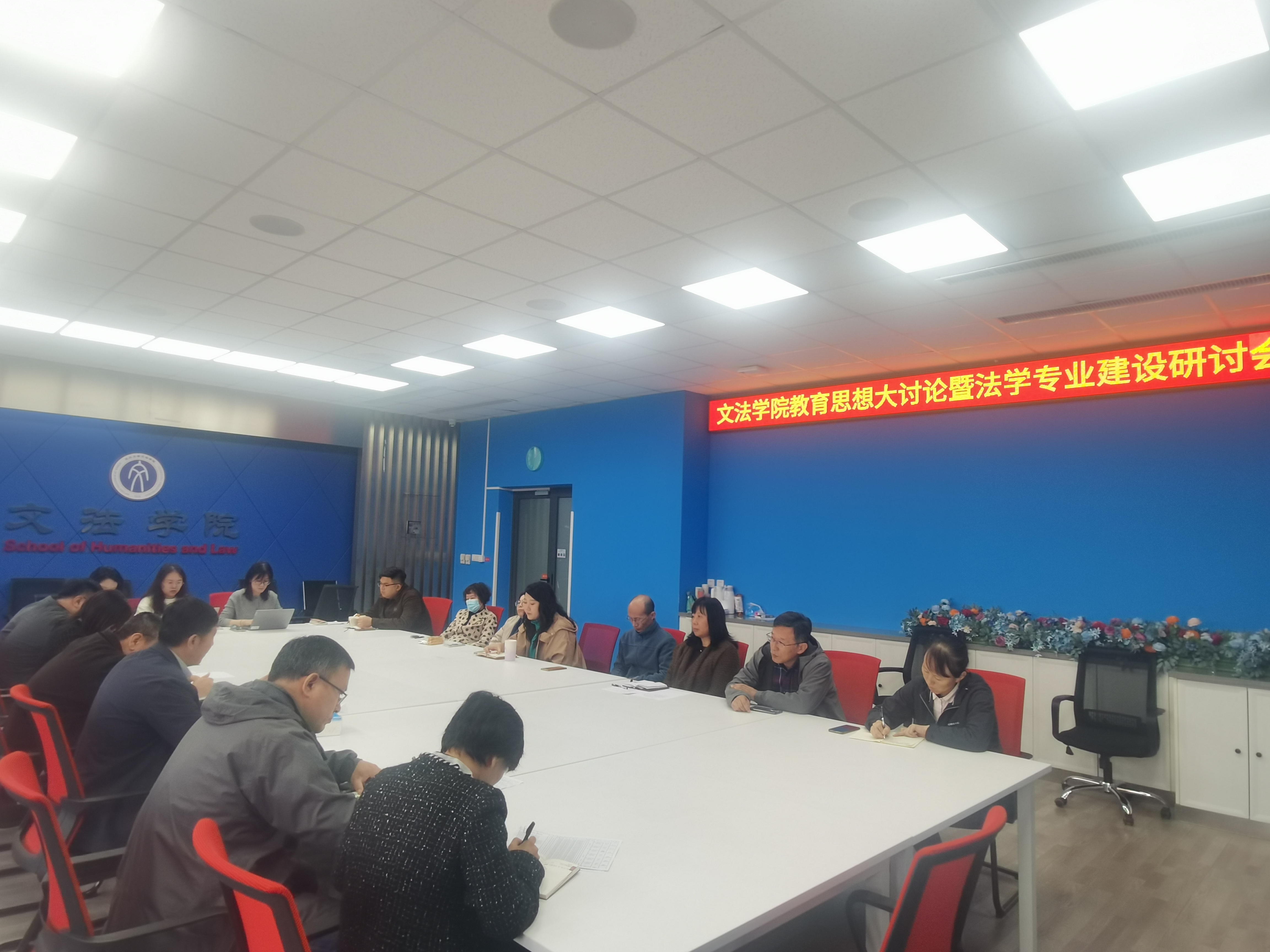 在文管学馆A210会议室组织召开教育思想大讨论暨法学专业建设研讨会。学院领导班子、法学系全体教师、教学科研办老师等参加研讨会。会议由院长杜宝贵主持。