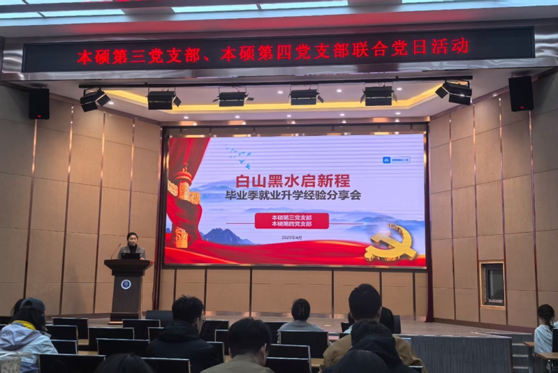本硕第三党支部与本硕第四党支部在文管学馆B230联合举办“白山黑水启新程”毕业季就业升学经验分享会。活动由两支部书记赵雨菲、方思源共同主持,全体党员与入党积极分子共同参与。