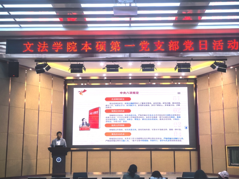 本硕第一党支部在文管学馆B230会议室开展中央八项规定精神学习教育专题党课,日本三级